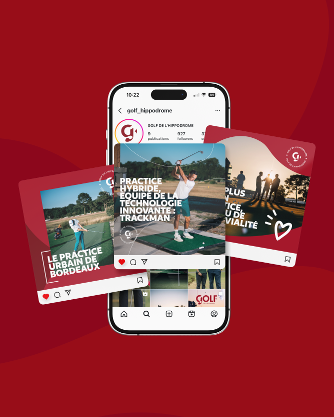 Un projet global pour le Golf de l’Hippodrome, avec la création d’un branding complet (logo, éléments graphiques...) et d’une direction artistique affirmée. Le site, moderne et créatif, reflète l’ambition du lieu : devenir un véritable espace de vie, au-delà du practice. Des animations soignées viennent renforcer l’identité visuelle et l’expérience utilisateur.