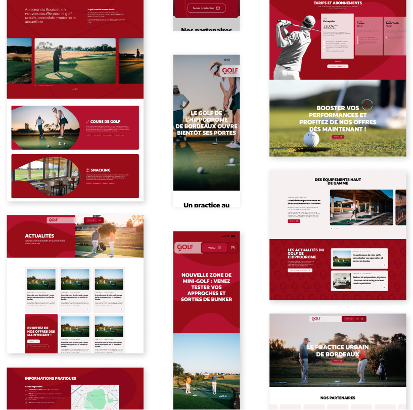 Un projet global pour le Golf de l’Hippodrome, avec la création d’un branding complet (logo, éléments graphiques...) et d’une direction artistique affirmée. Le site, moderne et créatif, reflète l’ambition du lieu : devenir un véritable espace de vie, au-delà du practice. Des animations soignées viennent renforcer l’identité visuelle et l’expérience utilisateur.